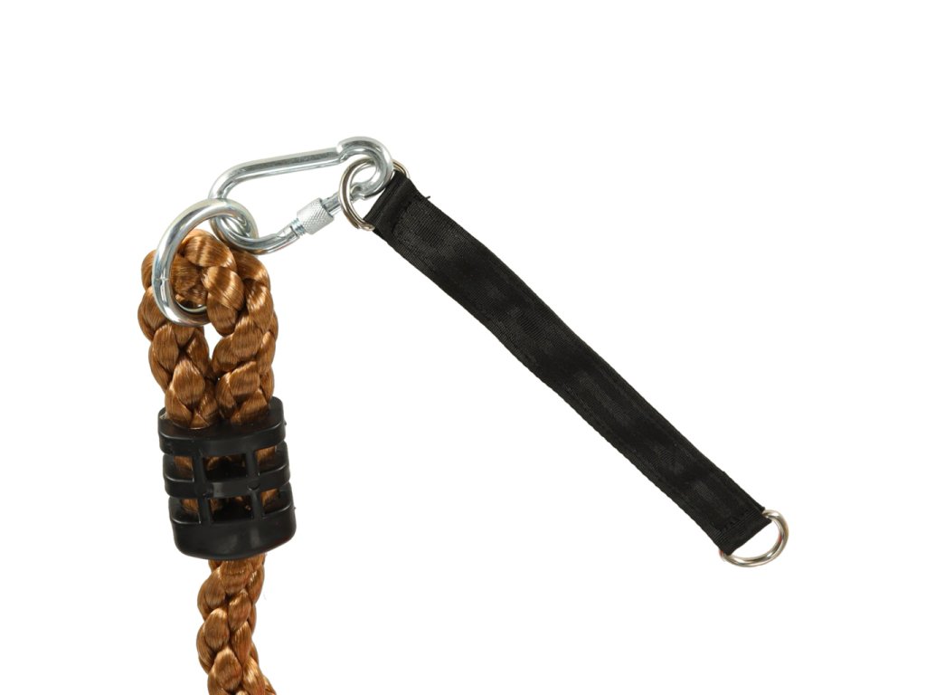 Součástí balení je karabina a upevňovací popruh a díky univerzálnímu systému lze lano zavěsit, kamkoli budete chtít: na žebřík, domek, větev nebo trám.