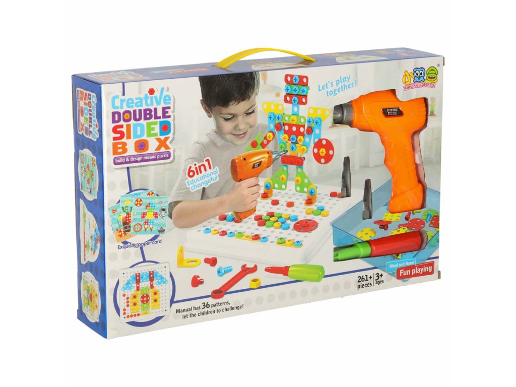 VZDĚLÁVACÍ PUZZLE SE ŠROUBOVÁKEM V KUFŘÍKU O 261 DÍLCÍCH.