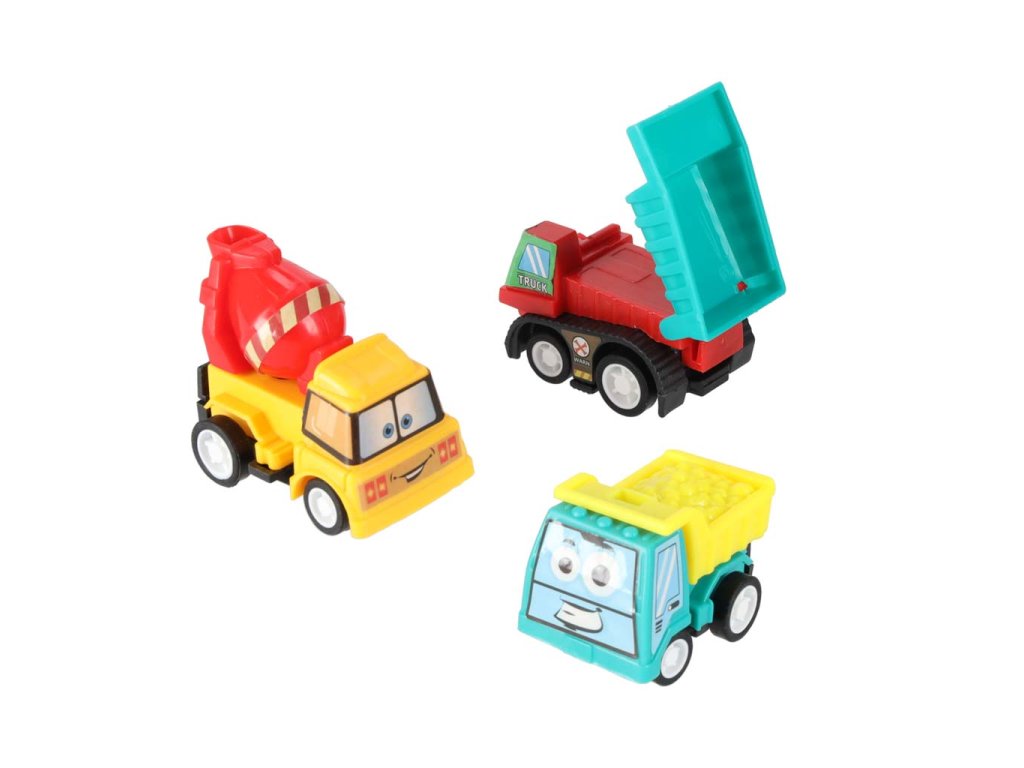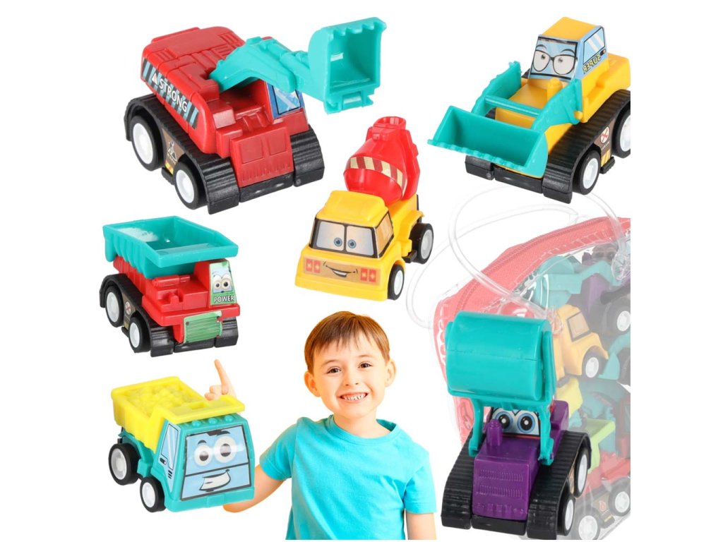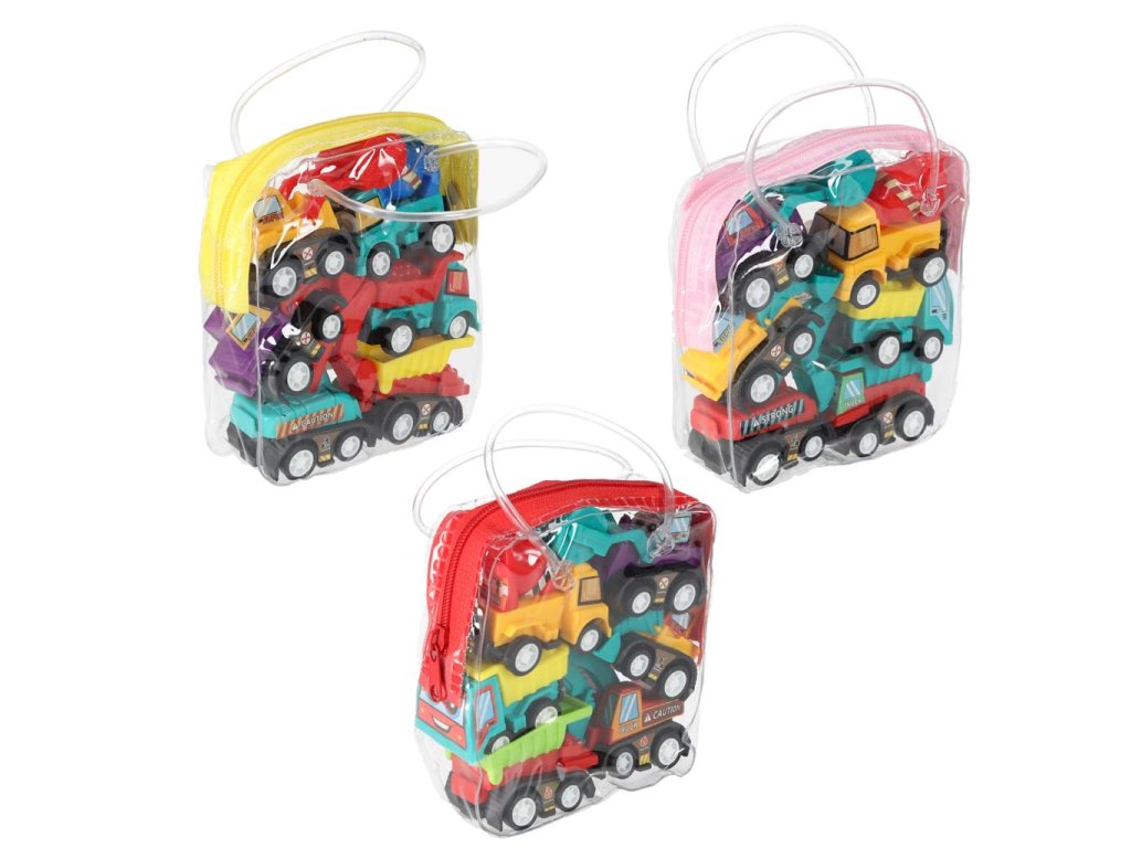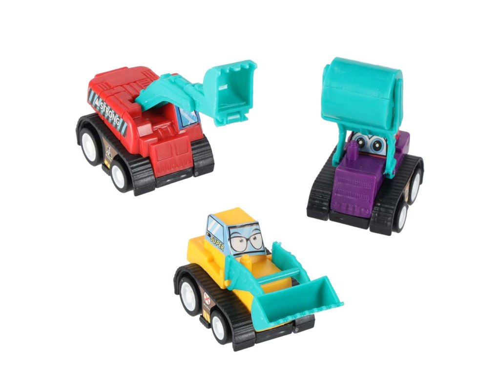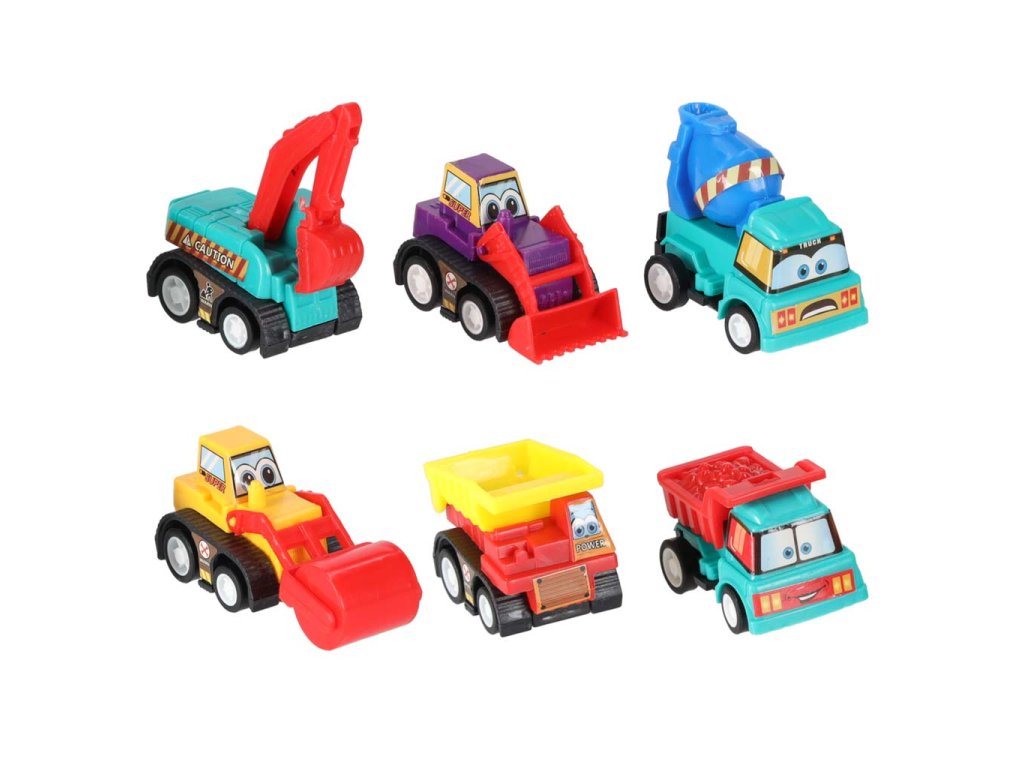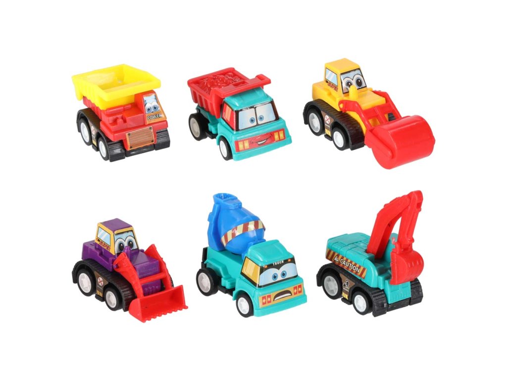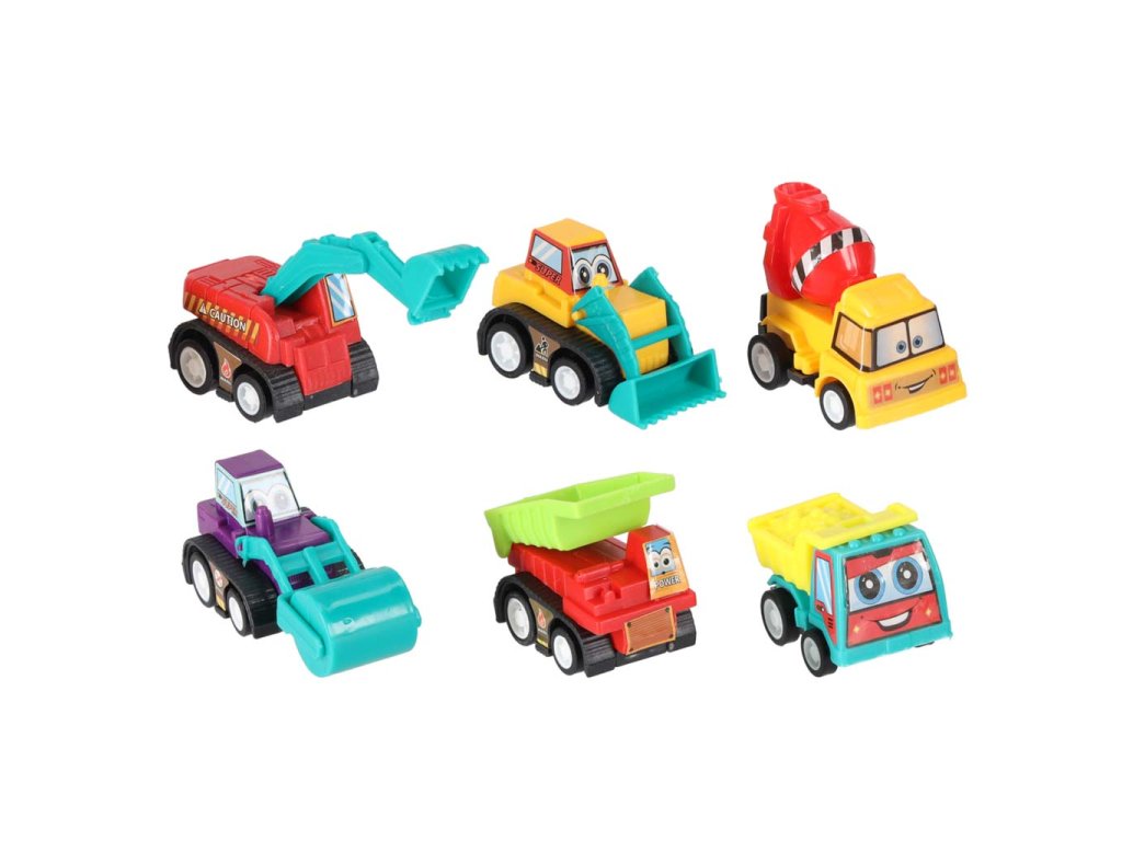 Sada obsahuje 6 různých stavebních vozidel s pohonem: