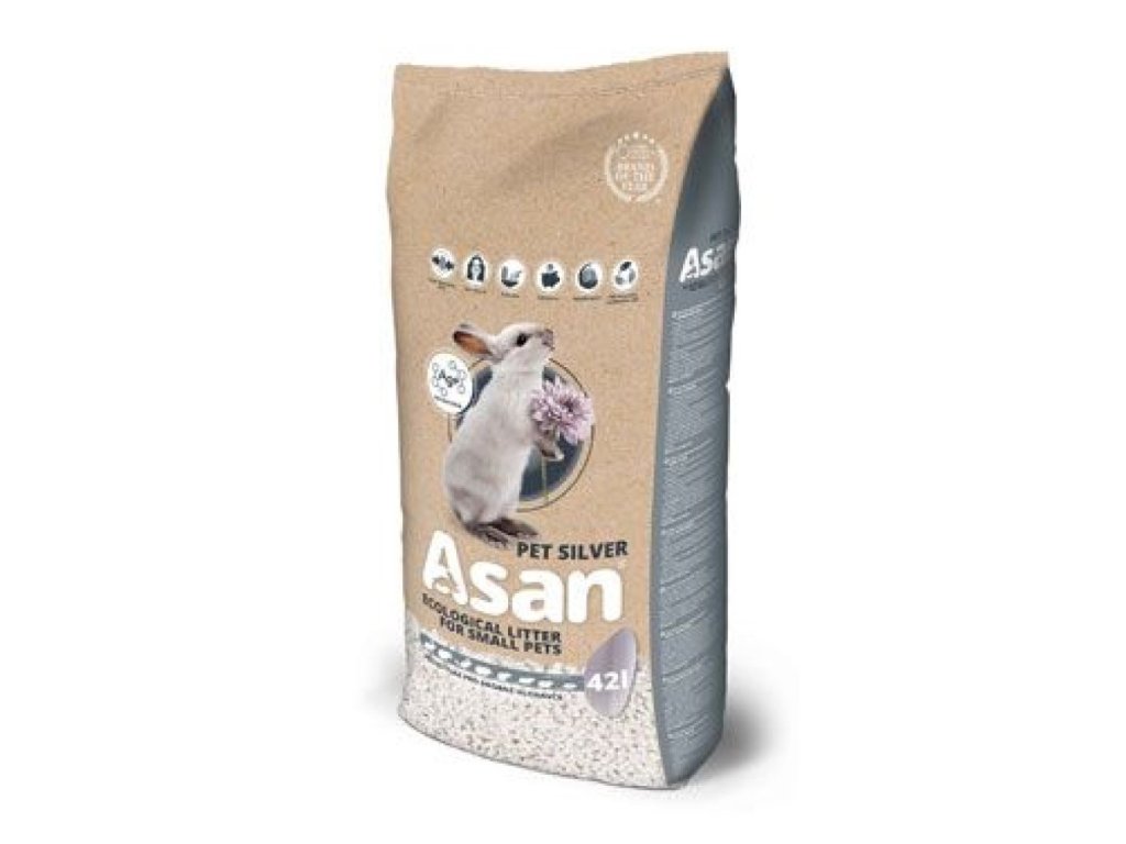 Ekologická podestýlka ASAN Pet Silver je jedinečná a jediná buničitá podestýlka určená pro králíky, morčata a jiné hlodavce. První podestýlka s koloidním stříbrem na trhu.Koloidní stříbro má antibakteriální a antiseptické účinky. Udrží podestýlku hygienicky bezpečnou pro zvíře i chovatele. Povrch podetýlky je stále suchý a netvoří bláto. Přírodní stelivo pro zakrslé králíčky a drobné hlodavce.- S koloidním stříbrem pro jeho antibakteriální účinek.- Bez prachu, parfémů a vzdušných alergenů, vhodný i pro alergiky a astmatiky.- Mimořádná absorpce pachů a vlhkosti.- Hygienicky nejzodpovědnější podestýlka na trhu.- Menší množství lze spláchnout do WC, větší množství můžete kompostovat nebo zlikvidovat do ekologického odpadu.Steliva Asan:- Mimořádně dobře pohlcují pachy.- Výborně vstřebávají vlhkost a dehydratují exkrementy domácích mazlíčků během několika vteřin.- Jsou bez prachu, přidaných barviv a parfémů, které jsou častými alergeny.- Nízká váha – minimální hmotnost steliv, mohou s nimi manipulovat i děti, které se o zvířata starají.- Malá spotřeba – v průměru 5x nižší než u minerálních steliv, šetří domácí rozpočet.- Jsou ekologicky šetrné, surovinu netěžíme, nekácíme stromy pro její získání. Steliva Asan jsou vyrobena z buničiny.- 100% rozložitelná steliva ohleduplná k životnímu prostředí.- Snadná a rychlá likvidace jako bioodpadu – do toalety nebo kompostováním.- Zdravotní aspekt – Asan steliva jsou nezávadná, nevytvářejí prostředí vhodné pro růst bakterií, nevyvolávají kašel, nedráždí sliznice. Jsou bezpečná pro děti a vhodná i pro alergiky a astmatiky.- Stále suchý povrch podestýlky zajistí komfort chovaným zvířatům.Doplňkové parametry