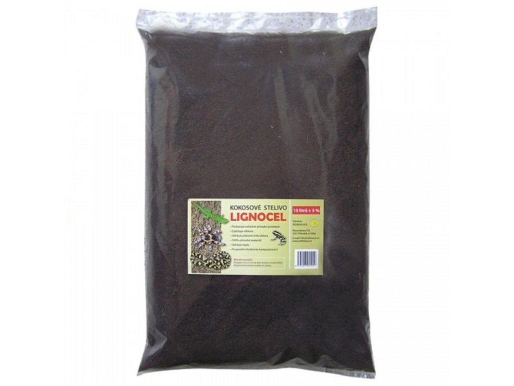 Jedná se o drcený materiál z kokosového ořechu. Velice dobře saje a drží vlhkost. Je to dřevitý materiál, proto nevodí teplo a působí izolačně. Nenamíchaný se hodí pod pavouky a jiné bezobratlé živočichy. Pod jiná zvířata nenamíchaný nedoporučujeme - při náhodném požití při konzumaci potravy může zvířeti způsobit trávicí obtíže. Pro nehrabavé (hlavně stromové) druhy je možno ho použít jako základní vrstvu a nahoře překrýt jiným materiálem (např. jedlovou kůrou). Pro ostatní druhy je dobré ho s něčím smíchat (např. s pískem).Další jeho využití je při pěstování rostlin - jako příměs do substrátů (zvyšuje objem substrátu a dobře drží vlhkost). Dá se použít jako nosné médium pro rostliny i samotný, např. při předpěstovávání sadby. Ovšem jen za předpokladu, že jsou všechny potřebné látky pro růst dodávány zálivkou, protože samotný lignocel žádné živiny neobsahuje.Je to 100% přírodní materiál a hodí se ke kompostování.Doplňkové parametry