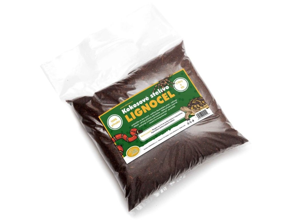 Jedná se o drcený materiál z kokosového ořechu. Velice dobře saje a drží vlhkost. Je to dřevitý materiál, proto nevodí teplo a působí izolačně. Nenamíchaný se hodí pod pavouky a jiné bezobratlé živočichy. Pod jiná zvířata nenamíchaný nedoporučujeme - při náhodném požití při konzumaci potravy může zvířeti způsobit trávicí obtíže. Pro nehrabavé (hlavně stromové) druhy je možno ho použít jako základní vrstvu a nahoře překrýt jiným materiálem (např. jedlovou kůrou). Pro ostatní druhy je dobré ho s něčím smíchat (např. s pískem).Další jeho využití je při pěstování rostlin - jako příměs do substrátů (zvyšuje objem substrátu a dobře drží vlhkost). Dá se použít jako nosné médium pro rostliny i samotný, např. při předpěstovávání sadby. Ovšem jen za předpokladu, že jsou všechny potřebné látky pro růst dodávány zálivkou, protože samotný lignocel žádné živiny neobsahuje.Je to 100% přírodní materiál a hodí se ke kompostování.Doplňkové parametry