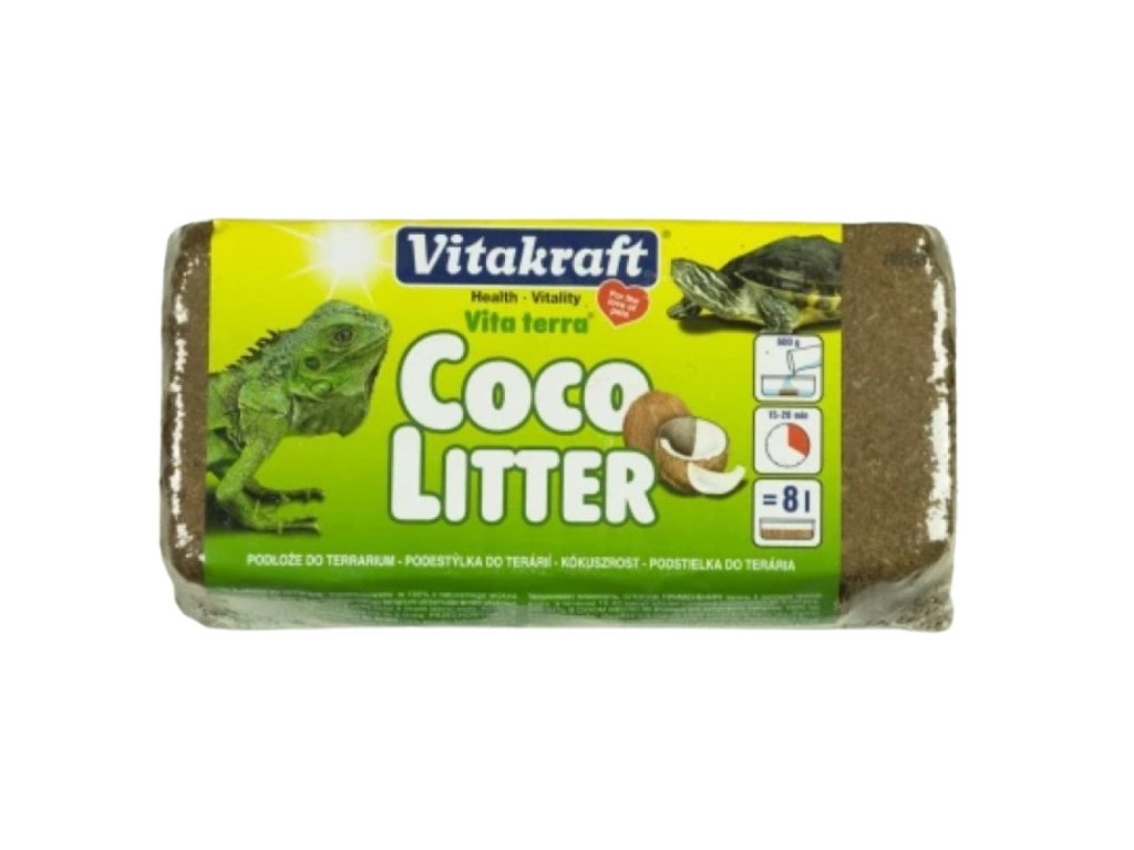 100% přírodní kokosové vlákno. Ideální pro všechna vlhká terária.Vysoká schopnost zadržovat vodu.Návod: zalijte 4 litry vlažné vody, během 15-20 minut se obsah zvětší do 8 litrů.Doplňkové parametry