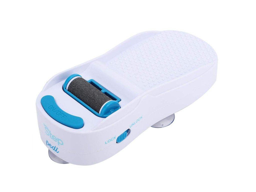 Elektrický pilník na chodidla Step Pedi je určen na údržbu chodidel. Odstraňuje ztvrdlou kůži na chodidlech, stačí se jen postavit na rotační pilník přístroje. Přístroj je možné používat ve sprše, také při sledování televize nebo čtení knihy. Přístroj je pohodlný, nemusíte se již více natahovat ke chodidlům. Za krátký čas budou vaše nohy hebké a měkké.