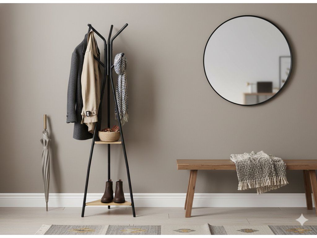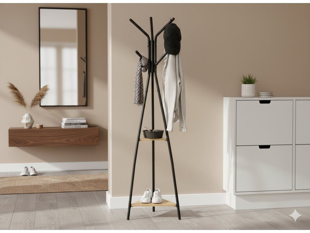 Stojan TARES je skvělou volbou pro ty, kteří oceňují praktická řešení v elegantním provedení. Díky jeho promyšlené konstrukci udržíte prostor uspořádaný a zároveň mu dodáte stylový charakter. Vhodný nejen pro domov, ale i kancelář, hotelové lobby či šatnu. ✨