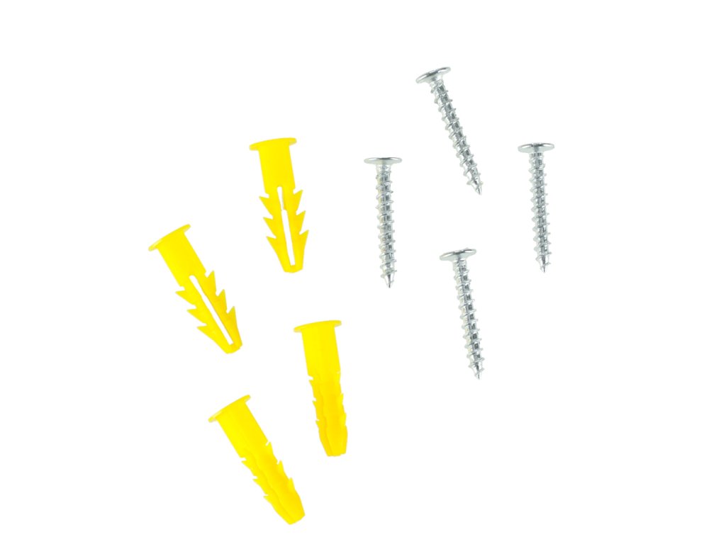 Montážní souprava: 4x šrouby + 2,4 cm dlouhé hmoždinky do zdi
