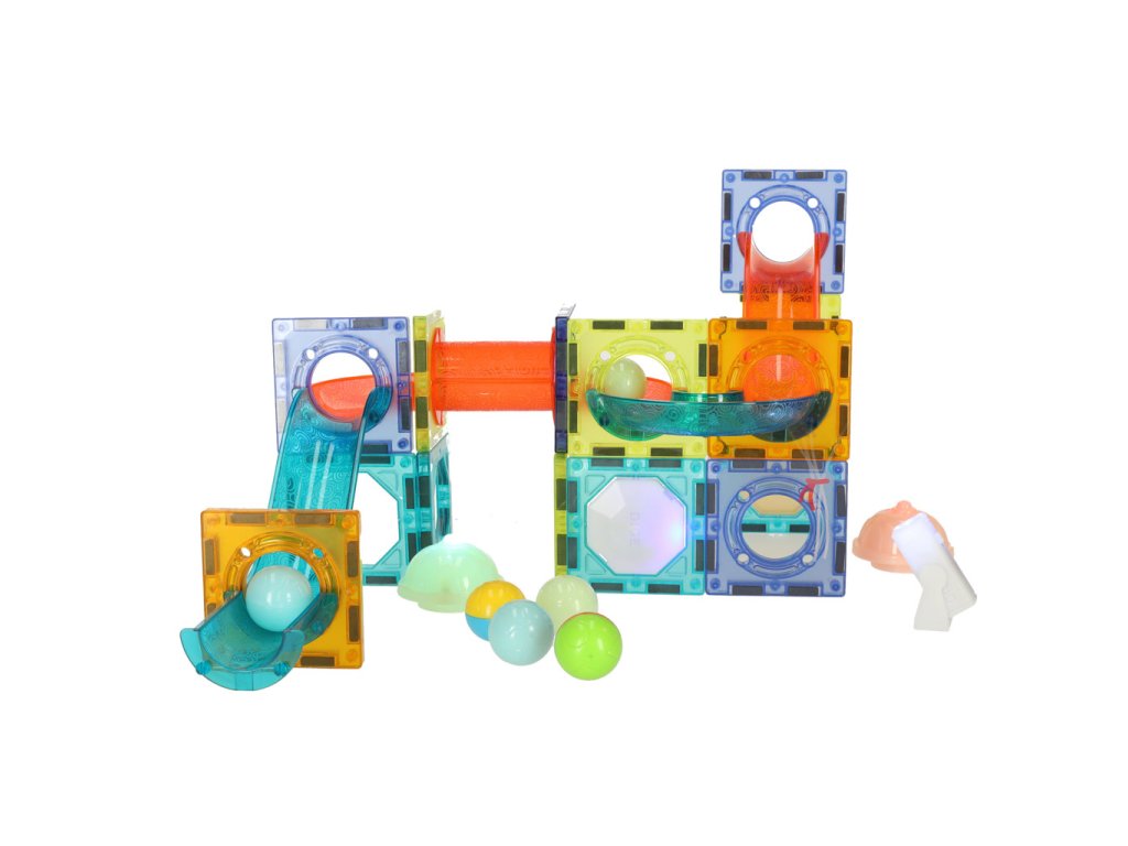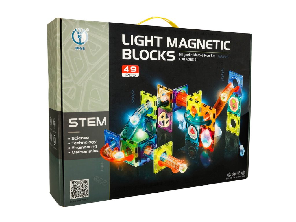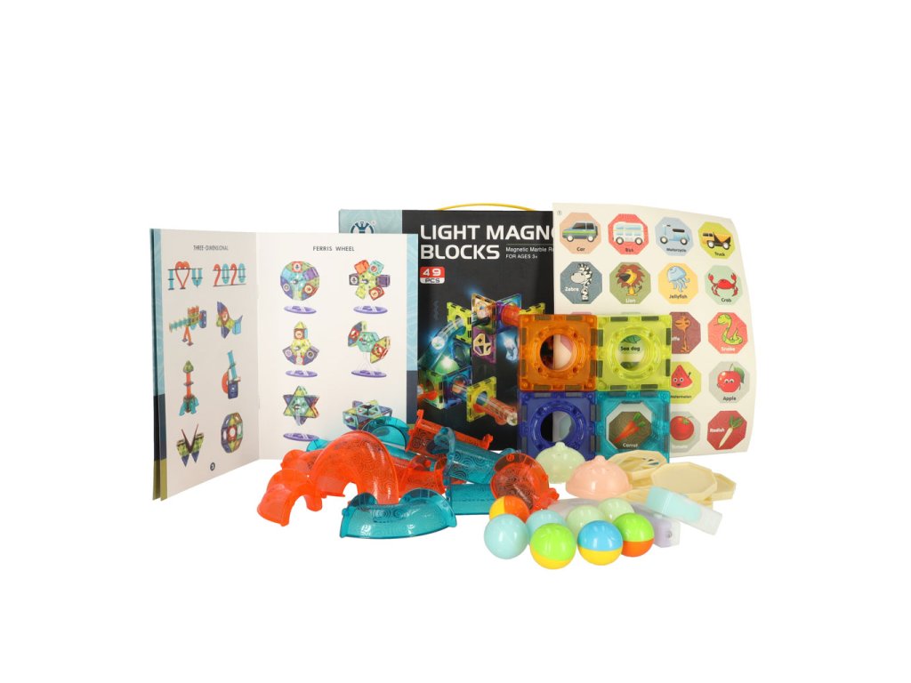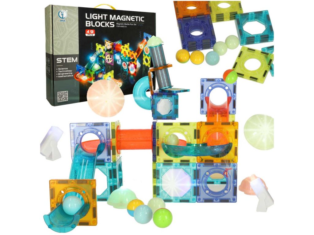 MAGNETICKÉ BLOKY MRAMOROVÁ KULIČKOVÁ DRÁHA SVÍTÍCÍ 49 PRVKŮ