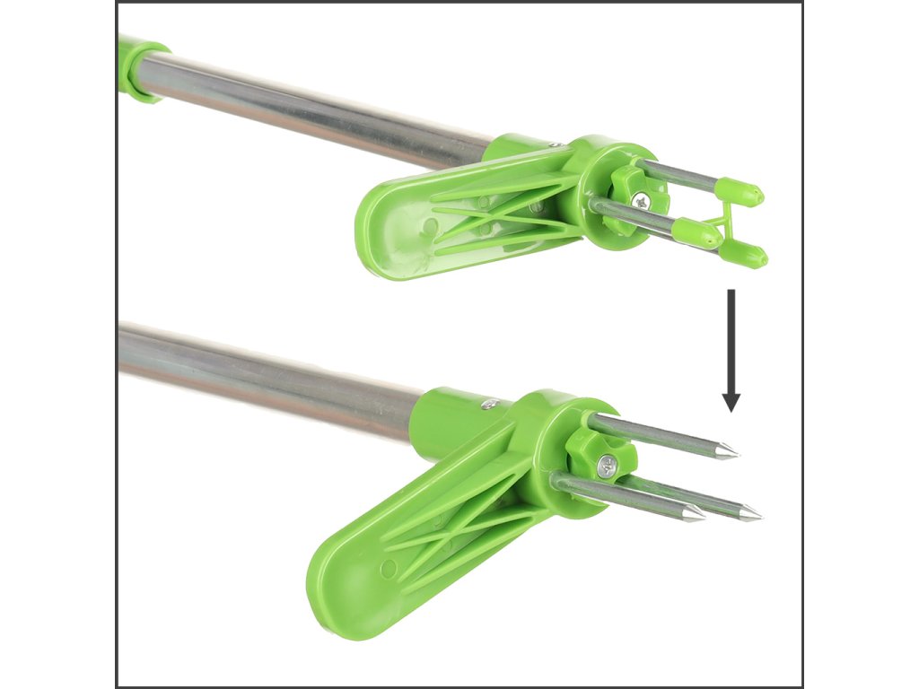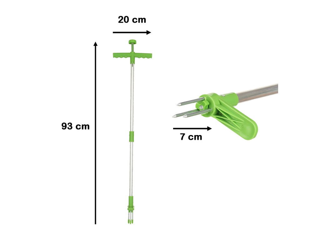 Zařízení na konci má tři čepele, které plevel zachytí z několika stran a umožní jeho vytrhnutí neinvazivním způsobem - tedy bez poškození okolních rostlin. A to vše bez ohýbání!