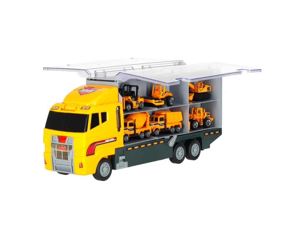 Transporter truck TIR launcher + kovové vozy stavební stroje