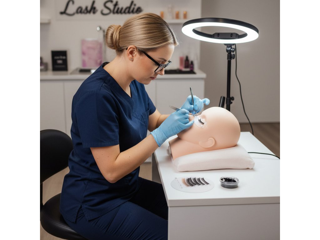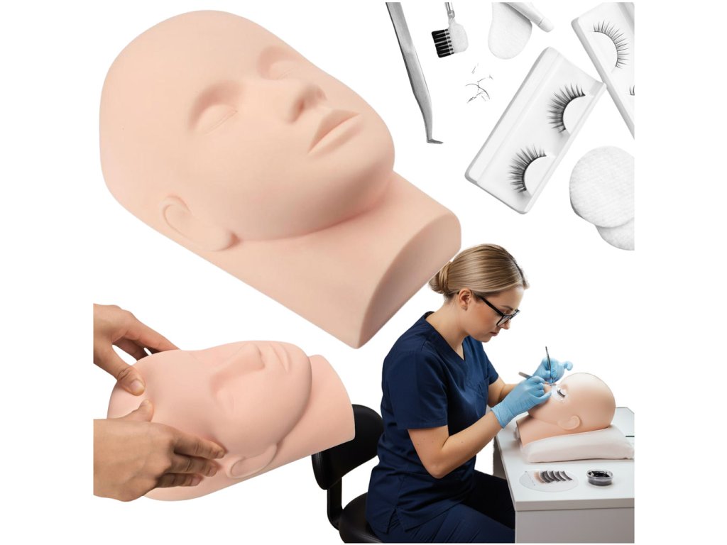 Profesionální tréninková hlava pro výuku aplikace umělých řas.