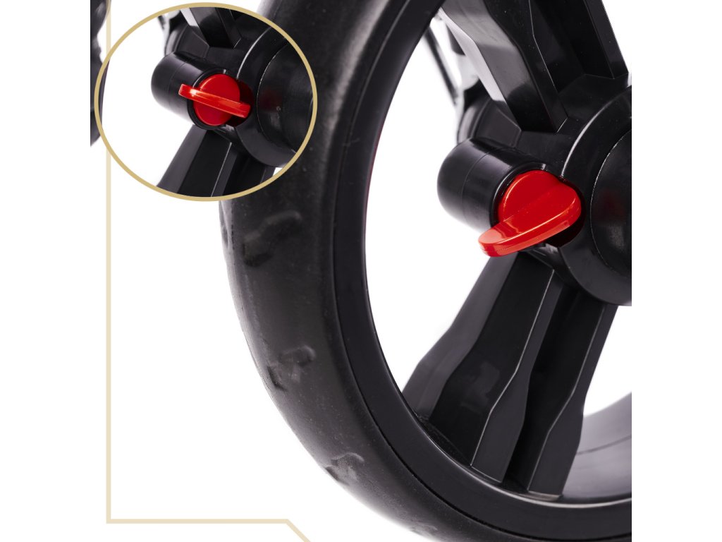Pro zvýšení bezpečnosti můžete zadní kola zablokovat brzdou.