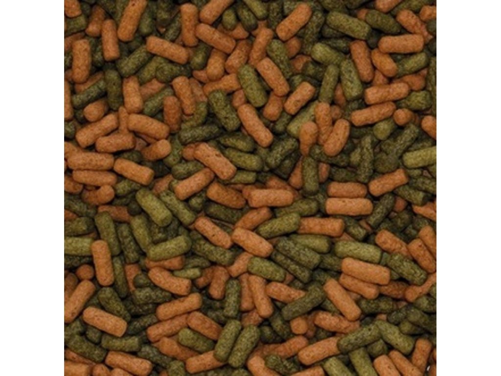 Tyčinky Cichlid Red & Green Large Sticks jsou také výborným doplňkem krmení býložravých cichlid a dalších velkých druhů ryb. Dva druhy tyčinek zajišťují bohatou a pestrou stravu. Zelené tyčinky jsou zdrojem cenných řas Spirulina platensis (6%), které spolu s vlákninou upravují proces trávení. Červené tyčinky jsou zdrojem živočišných bílkovin a astaxanthinu, který zvýrazňuje zbarvení ryb. Obsažený v krmivu přírodní imunostimulátor – beta-glukan, vitamín C a aktivní látky spirulinu zvyšují odolnost ryb proti nemocem. Toto krmivo je k dispozici i v jiné formě: Cichlid Red & Green Medium Sticks.Složení: ryby a výrobky z ryb, výrobky rostlinného původu, bílkovinné extrakty rostlinného původu, řasy (Spirulina platensis min. 3%), měkkýši a korýši, obiloviny droždí (v tom Beta-1,3/1,6-Glukan 1000 mg/kg), oleje a tuky, krmné složky minerálního původu (v tom zeolit 1%).Analytické složky: hrubý protein 46,5%, hrubé oleje a tuky 6,5%, hrubá vláknina 4,0%, vlhkost 8,0%.Doplňkové parametry