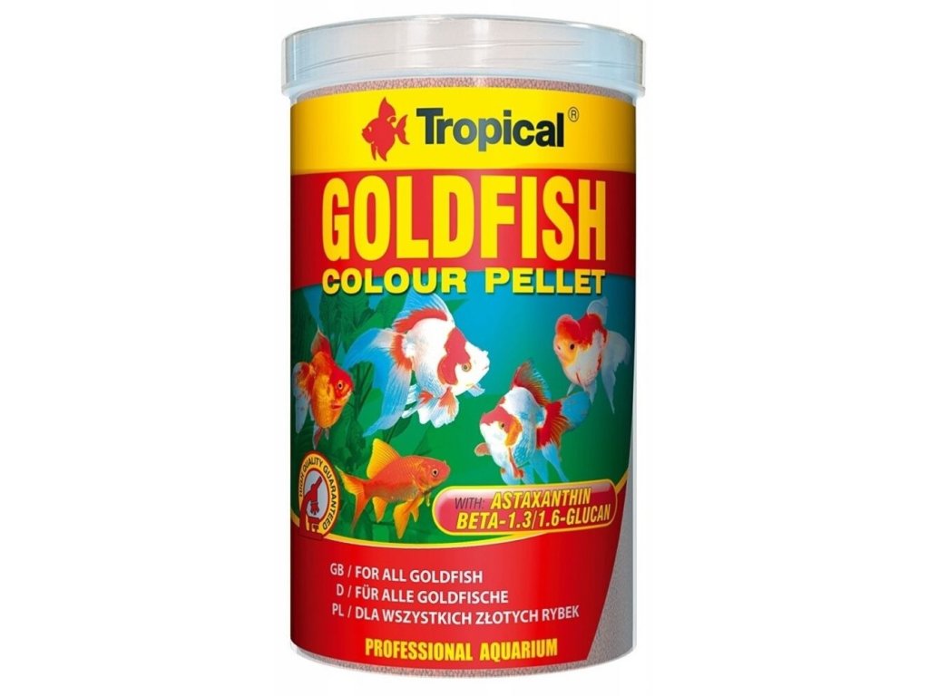 Základní krmivo zvýrazňující zabarvení ve formě drobných, plovoucích po povrchu vody granulí, určené pro každodenní krmení všech druhů závojnatek a mladých kapříků koi žijící jak v akváriích, tak v zahradních jezírkách. Bohaté složení krmiva Goldfish Colour Pellet zohledňuje různorodou stravu kaprovitých ryb a zaručuje jim správný růst i výbornou kondici. Obsaženy v krmivu přírodní barviva, včetně dobře vstřebatelného astaxanthinu, způsobují, že barvy ryb, především červené, oranžové a žluté, se stávají intensivní a získávají lesk. Rybí obranný systém posilují vitamín C a beta-glukan – přírodní imunostimulátor získávaný z kvasnic.Složení: ryby a výrobky z ryb, vedlejší produkty rostlinného původu (v tom výtažek z červené papriky 2200 mg/kg), bílkovinné exrakty rostlinného původu, měkkýši a korýši, obiloviny, řasy, kvasnice, oleje a tuky, minerální látky.Analytické složky: hrubý protein 45,0%, hrubé oleje a tuky 7,0%, hrubá vláknina 3,0%, vlhkost 10,0%.Doplňkové parametry