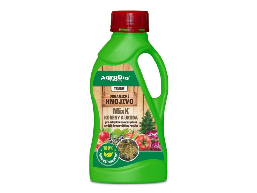 Univerzální kapalné organické (přírodní) hnojivo s vyšším obsahem přírodního draslíku. Pro výživu zeleniny, bylinek, jahod a drobného ovoce, okrasných, balkónových rostlin, aj. během jara, léta i podzimu. Obsah živin: NK (3,5-0-4,5) + aminokyseliny. Jak účinkuje pro tvorbu kořenů a kořenového vlášení zvyšuje tvorbu plodů a jejich trvanlivost kombinace vyššího % přírodního draslíku a aminokyselin podporuje zakořeňování a zvyšuje počet květů, plodů draslík podporuje chuť a aroma plodů (jahody, bylinky, rajčata, aj.) vhodné na začátek vegetace (po výsadbě) a v druhé 1/2 vegetace rostlin (od počátku kvetení až do sklizně) vhodné také jako podzimní hnojivo jen z přírodních (organických) surovin - je vyrobeno z vinassy a volných aminokyselin pro aplikaci zálivkou Pro jaké rostliny zelenina (rajčata, papriky, okurky, mrkev, salát, ředkvičky, hrášek, aj.) bylinky (pažitka, bazalka, rukola, tymián, oregáno, petržel, aj.) drobné ovoce (jahody, maliny, ostružiny, rybíz, aj.) okrasné rostliny a dřeviny pokojové rostliny balkónové rostlinyJak jej použít aplikace zálivkou dávkování: 10 ml / 1 l vody / 10 m2 pro pravidelnou výživu co 7-14 dní hnojivo je vhodné i pro podzimní výživuAplikace: Na jaře: zálivkou na začátku vegetace (po výsadbě) a v druhé 1/2 vegetace rostlin (od počátku kvetení až do sklizně) Na podzim: zálivkou od září, října 3 x co 7-14 dníNáš tip: doporučujeme kombinovat s kapalným hnojivem TRUMF MixN - Růst.Doplňkové parametry