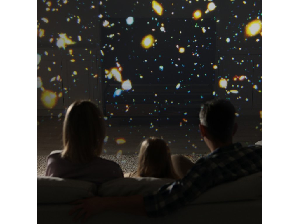 Projektor umožňuje nastavit úhel obrazu tak, aby dokonale vyhovoval místu použití - na stropě, stěně nebo jiném povrchu. Funkce automatického otáčení obrazu dodává dynamické a realistické efekty pohybu ve vesmíru.