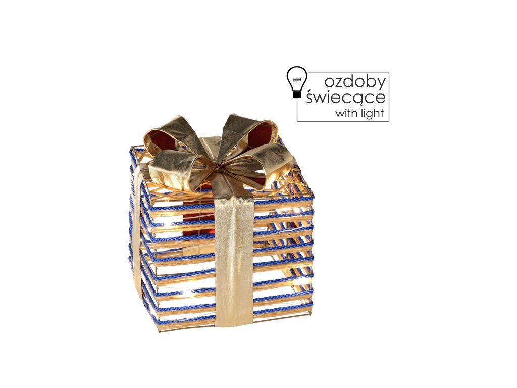 VÁNOČNÍ OZDOBY - DÁREK S MODROU MAŠLÍ 20 CM LED *1239