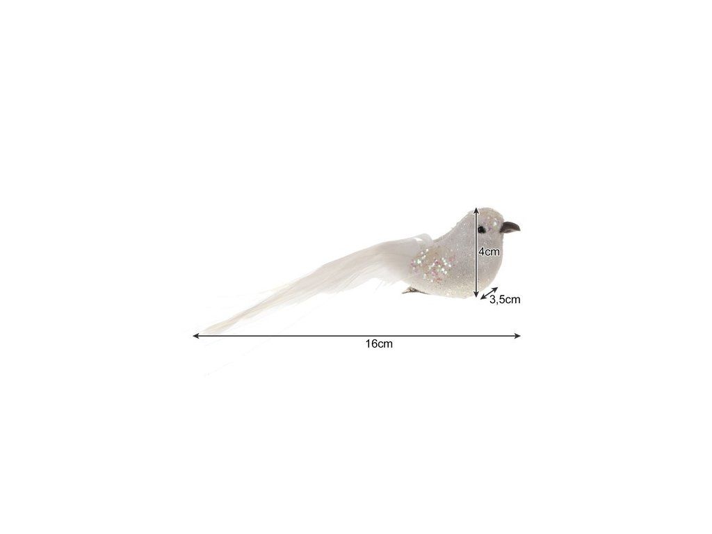 Objevte kouzlo naší sady dvou bílých ptáčků z polystyrenu, které prostor elegantně a lehce ozdobí a jemný třpyt dodá lesk a eleganci. Tito půvabní ptáčci jsou upevněni na praktických klipech.