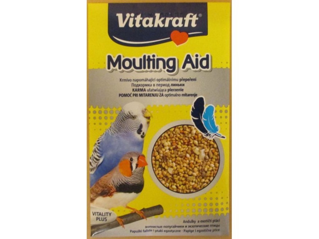 Podáváme při výměně opeření, zásobuje ptáky nezbytnými vitamíny a doplňkovými látkami, tímto pomáhá při rychlém a bezproblémovém průběhu pelichání. Zajišťuje andulkám a exotickým ptákům vitamíny, minerály a stavební látky, které potřebují během opeření. Účinná směs obilovin s obsahem metioninu přispívá k rychlému a bezproblémovému průběhu přepeření a napomáhá zdravému vývoji ptáku.Doporučené dávkování: max. 30% kompletního krmiva.Složení: obiloviny 83,5%, pekařské výrobky, ořechy, oleje a tuky, minerály.Doplňkové parametry