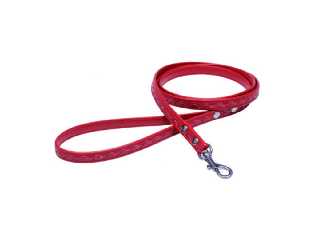 Vodítko vlnka je vyrobeno z velmi příjemné a měkké koženky zdobené vlnkou se stříbrným třpytem. Spoje jsou spojeny dvěmi nýtky. Rozměr: 1,2 x 120cmBarva: červenáDoplňkové parametry