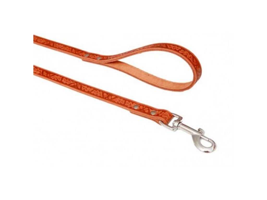 Vodítko je vyrobeno z příjemné hovězí kůže, zdobené dubovým listem a žaludem. Spoje jsou pevně spojeny nýty a tak dosahují maximální pevnosti.Rozměr: 1,6 x 120cmBarva: koňak KŮŽE - návod na ošetřování · po zakoupení kožených výrobků doporučujeme důkladné ošetření impregnací určenou pro kůži, 2 - 3x ročně ošetřit (po odstranění nečistot suchým, nebo mírně navlhčeným hadříkem a následném pozvolném vysušení ) · je důležité kůži chránit před provlhnutím (může dojít k mírnému zabarvení)Doplňkové parametry