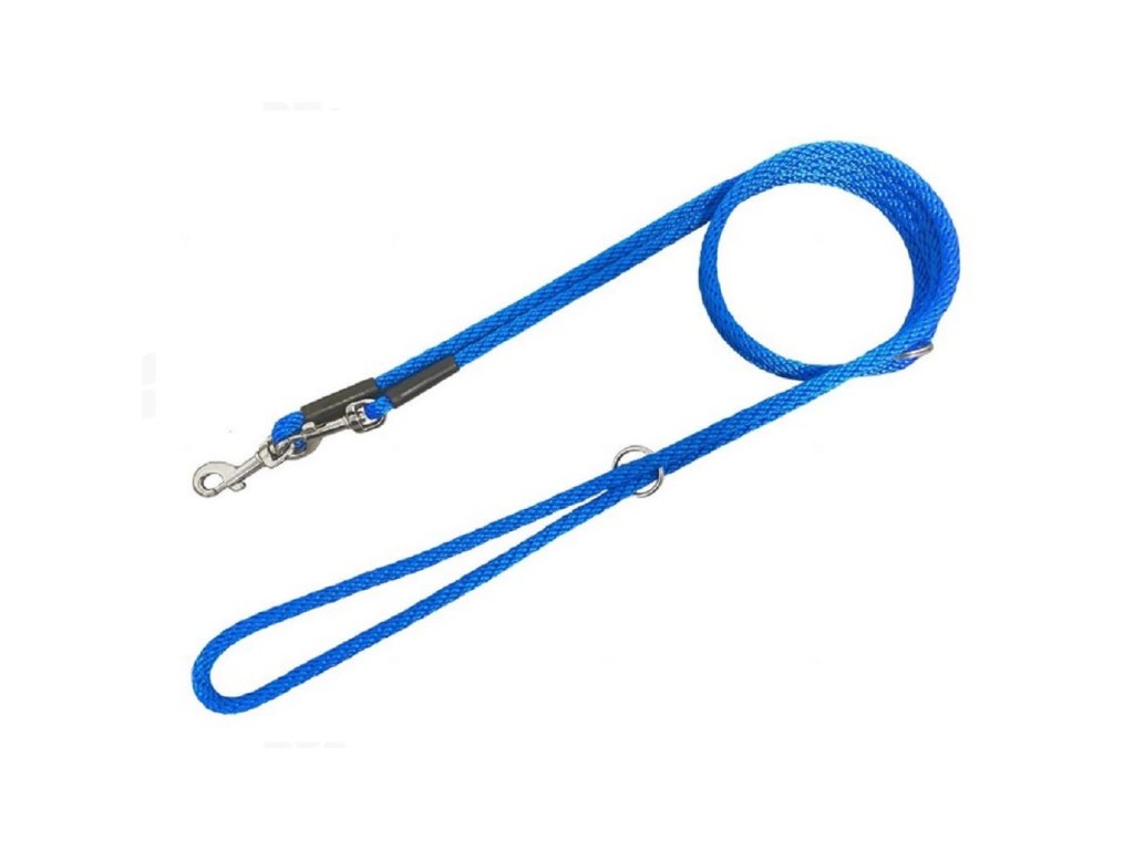 Přepínací vodítko je vyrobeno z pevného lana v designu spirály. Pro maximální pevnost jsou spoje vodíteka vysokoteplotně svařené, prošité a překryté plastovou krytkou. Po délce jsou umístěné dva kroužky pro přepínání dle potřeb. Jsou vhodné pro malá, střední a velká plemena. Rozměr: šířka 0,6cm, délka 240cmBarva: modráDoplňkové parametry