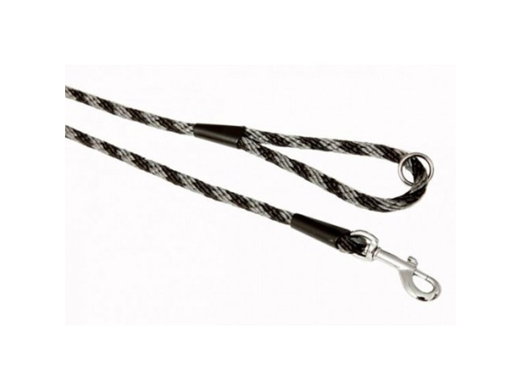 Klasické provazové vodítko je vyrobené z pevného lana v designu spirála. Pro maximální pevnost jsou spoje vodítka vysokoteplotně svařené, prošité a překryté plastovou krytkou. V uchu je umístěn svařovaný kroužek pro zkrácení na polovinu. Vodítko je vhodné pro střední a velká plemena.Rozměr: 1 x 150cmBarva: šedo/černáDoplňkové parametry