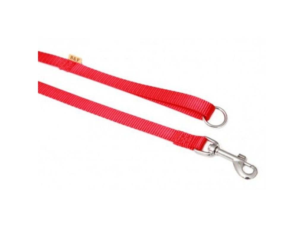 Vodítko z popruhu, pevně prošité, v uchu všitý svařovaný kroužek pro zkrácení na polovinu.Rozměr: šířka 2,0cm, délka 150cmBarva: červenáDoplňkové parametry
