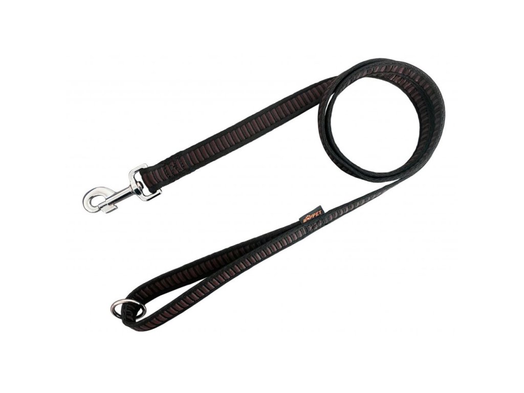 Pevné vodítko, zakončené praktickou pochromovanou karabinou pro snadné připnutí k obojku. Kovový kroužek navlečený na smyčce držadla pro připnutí karabiny, když je pes na volno. Rozměr: šířka 2,0cm, délka 150cmBarva: hnědo-černáDoplňkové parametry