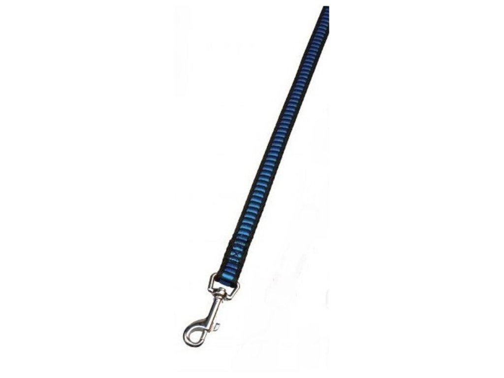 Pevné vodítko, zakončené praktickou pochromovanou karabinou pro snadné připnutí k obojku. Kovový kroužek navlečený na smyčce držadla pro připnutí karabiny, když je pes na volno. Vhodné pro psy středních a velkých plemen.Rozměr: šířka 2,5cm, délka 150cmBarva: modro/černáDoplňkové parametry