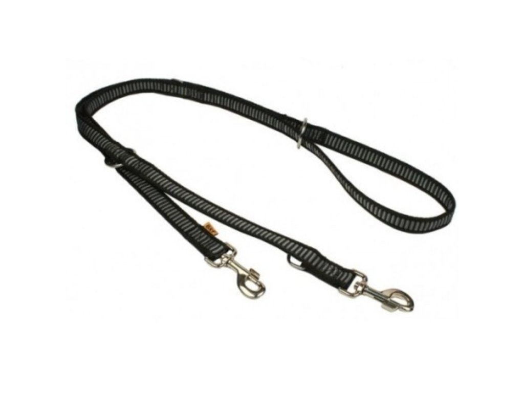 Vodítko je pevně prošité, díky několika svařovaným kroužkům lze zkracovat a prodlužovat. Je vhodné pro střední a velká plemena.Rozměr: 2,5 x 240cmBarva: šedo-černáDoplňkové parametry