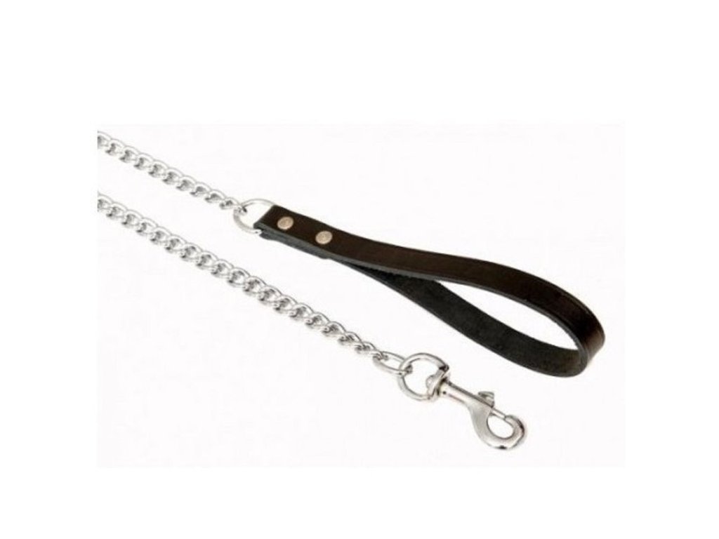 Řetízkové vodítko s malými očky je vyrobeno z pevného materiálu. Všechny jeho díly jsou svařeny a tak vodítko dosahuje maximální pevnosti. Ucho vodítka je vyrobeno z vrchové hovězí kůže, promaštěné, takže velmi příjemné do ruky. Je vhodný pro střední a velká plemena.Rozměr: síla drátu 4mm, délka 110cmBarva úchytu: černáDoplňkové parametry
