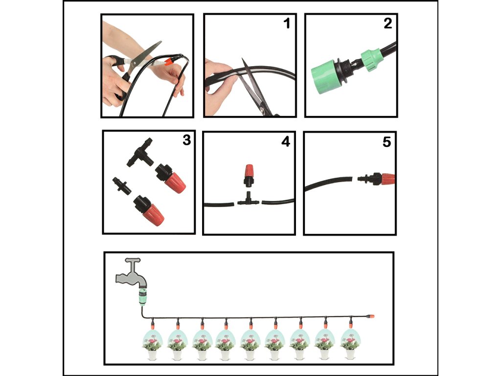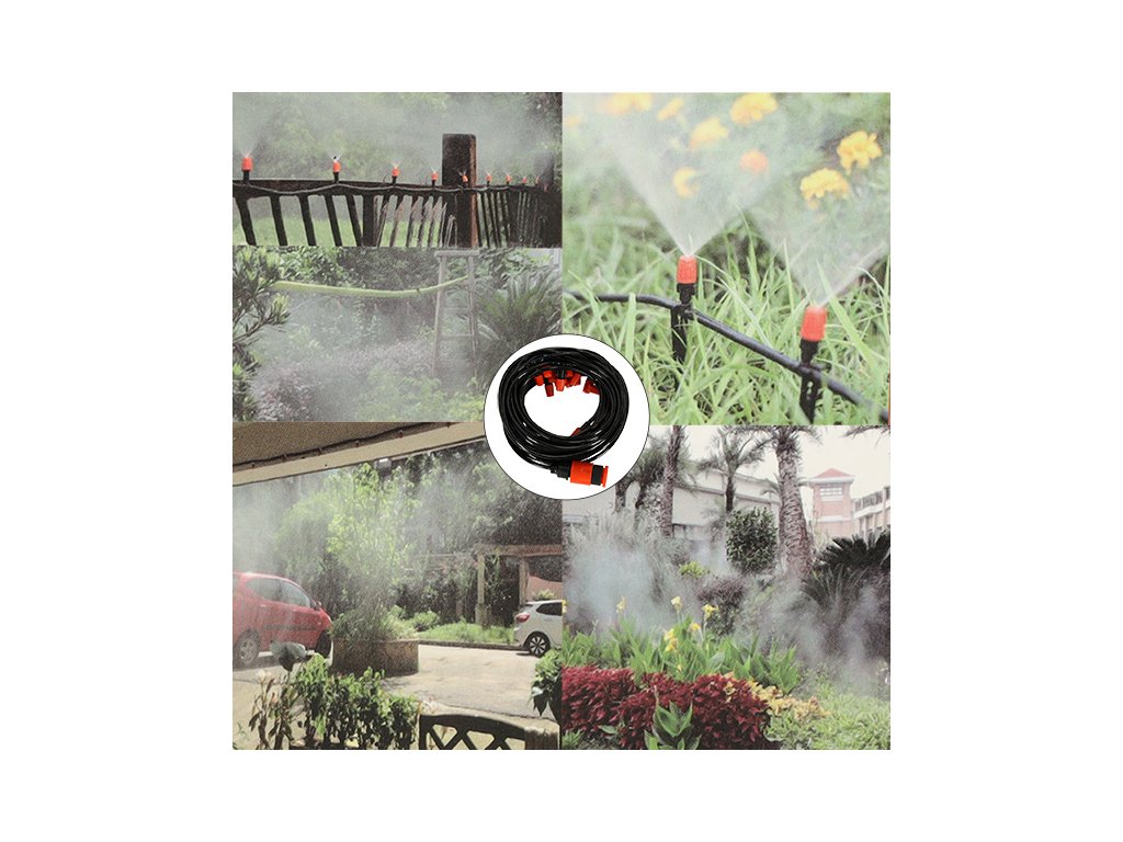 Stačí připojit kabel zavlažovače k zahradní hadici nebo vodovodnímu kohoutku a můžete si užívat jemnou mlhu, která ochladí váš den!