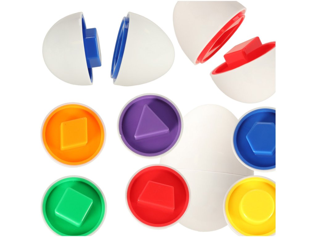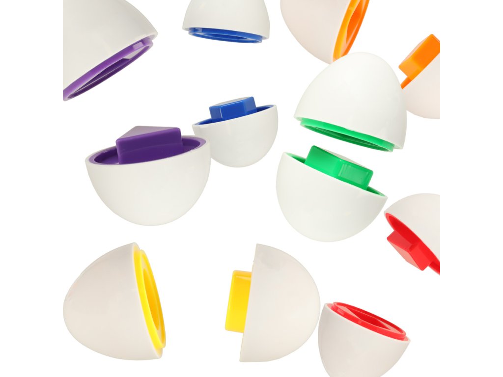 Sada se skládá ze 6 vajíček různých barev a tvarů, které se k sobě hodí.