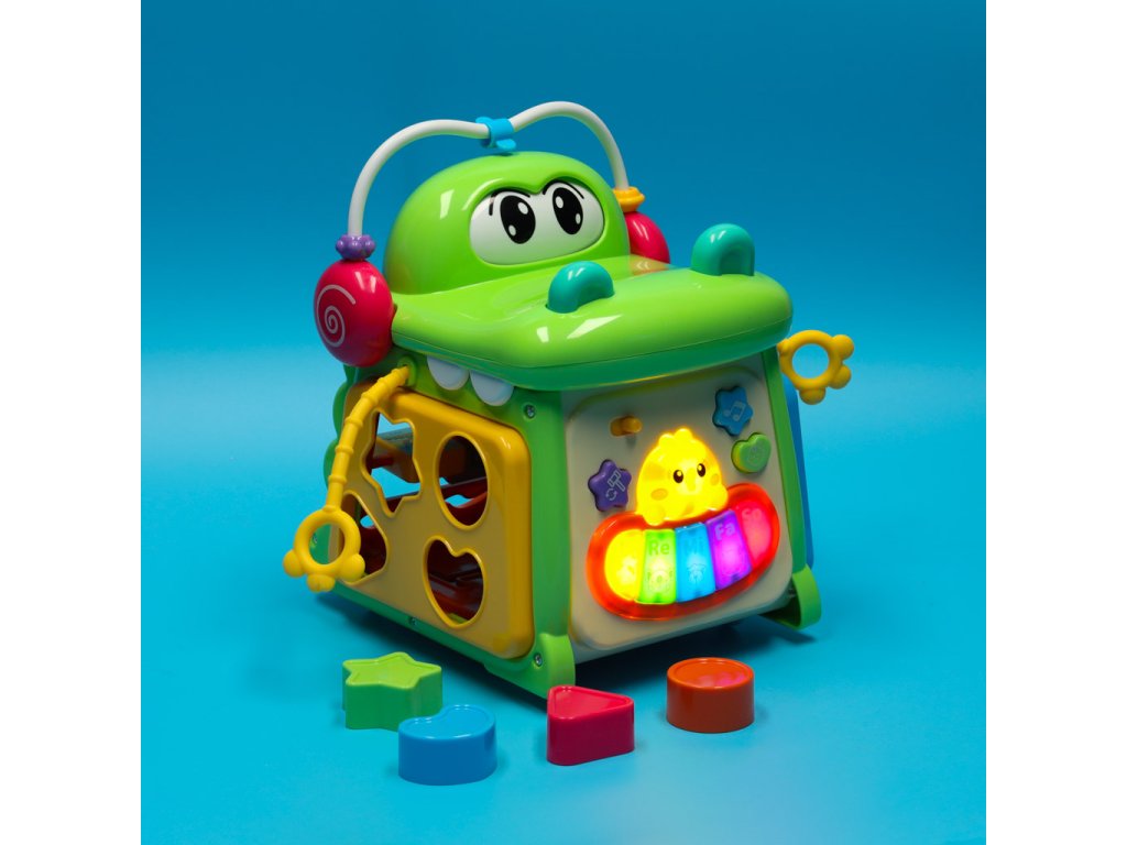 Pokud hledáte hračku, která "funguje", protože baví, rozvíjí a poskytuje spoustu zábavy - právě jste ji našli. Smyslová vzdělávací kostka - třídička tvarů s klavírem byla vytvořena pro batolata, která začínají poznávat svět. A dělá to ve velkém stylu! V jedné hračce najdete barevnou kostku, vzdělávacítřídič tvarů ainteraktivní piáno se světelným efektem - to vše v podobě roztomilého krokodýla. Živé barvy, hravý design a spousta zákoutí způsobí, že vaše dítě bude po kostce dychtivě sahat znovu a znovu.