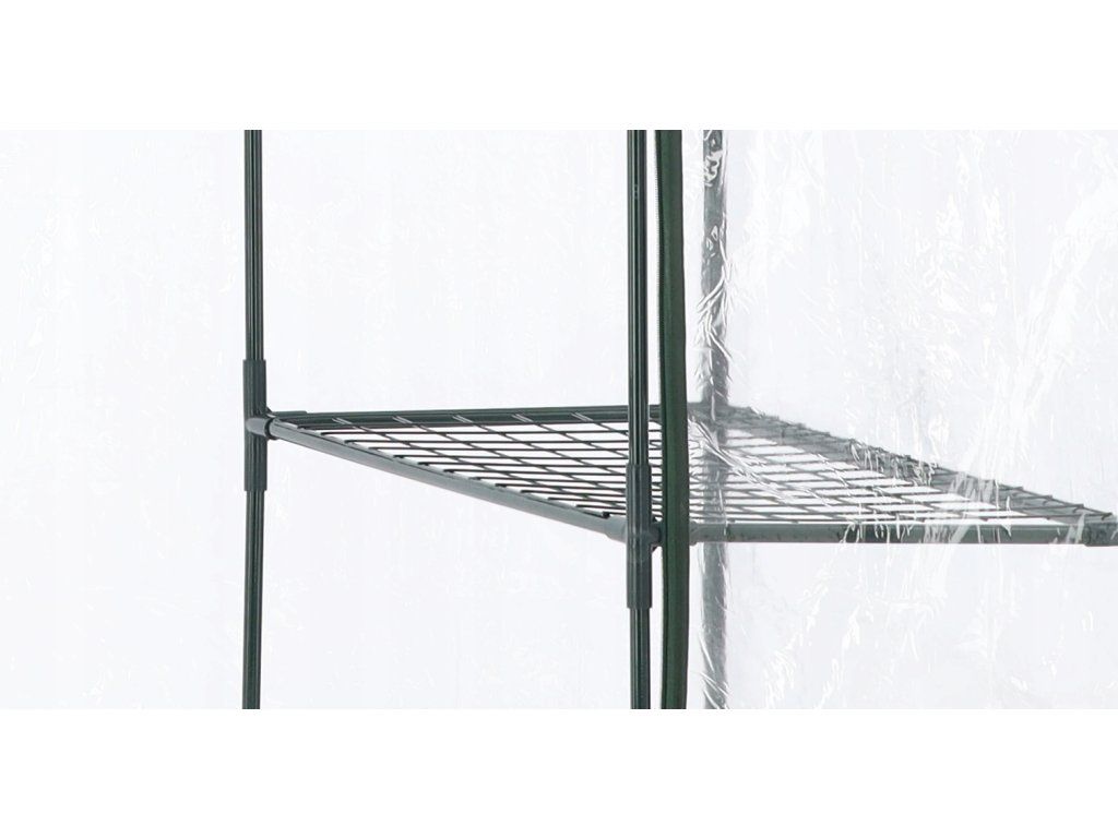 Pevný rám spojovaný spojkami PE zaručuje stabilitu i při silnějším větru. - 🗄️ 8 širokých polic na dvou stěnách