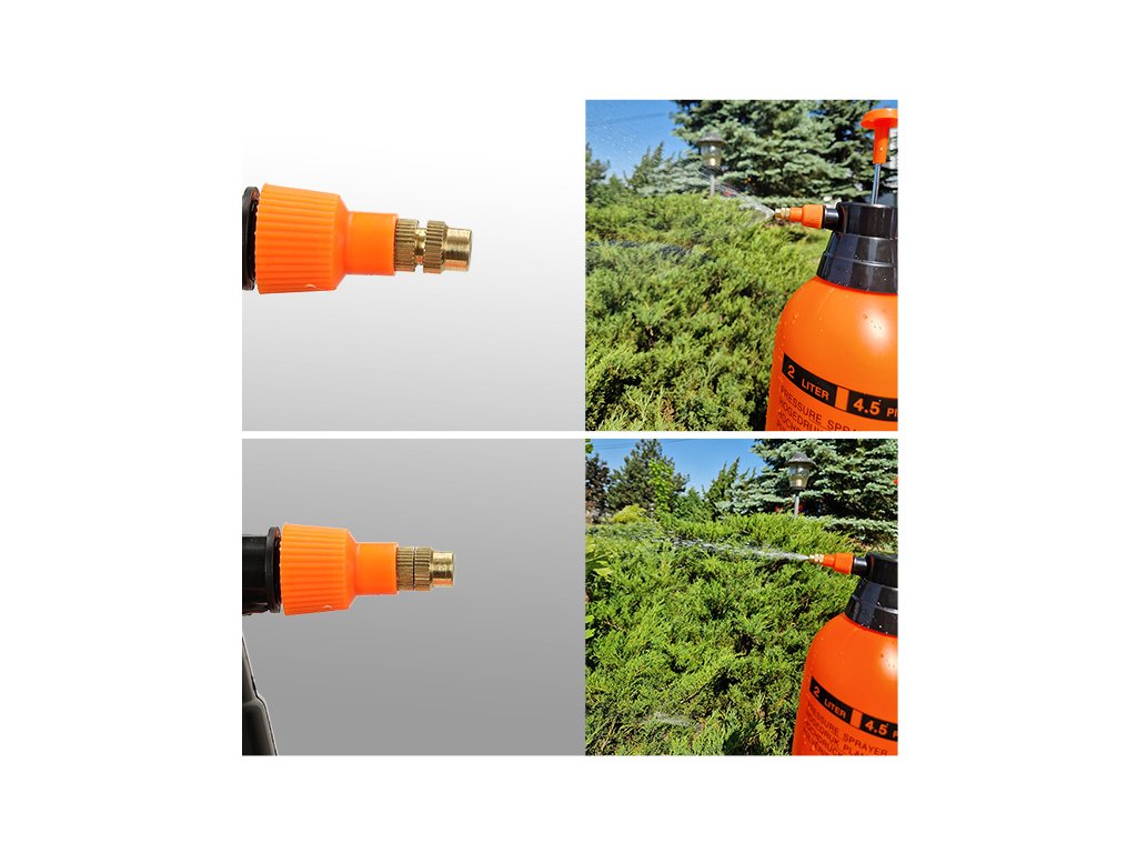 Mosazná tryska umožňuje snadné nastavení tlaku, stačí ji otočit doleva pro zvýšení tlaku nebo doprava pro jeho snížení! Manuální tlakový systém, na kterém je tento zahradní postřikovač založen, je intuitivní, snadno se používá a je odolný!