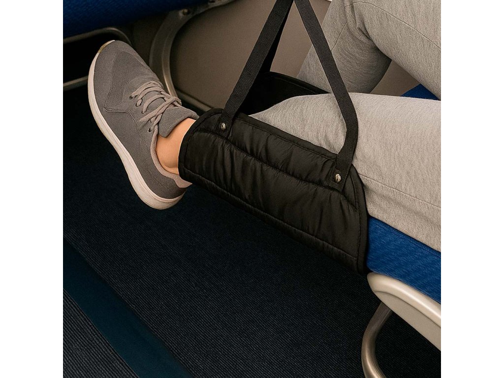 - Pohodlná cestovní opěrka nohou - praktická pomůcka, která výrazně zvyšuje pohodlí v letadle, autobuse, vlaku nebo i při práci v kanceláři. Umožňuje odpočinek nohou a poskytuje pohodlnou polohu při sezení.
