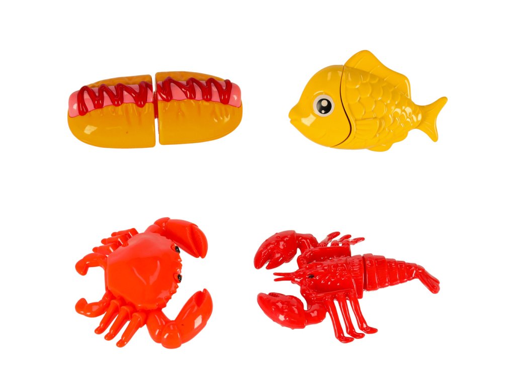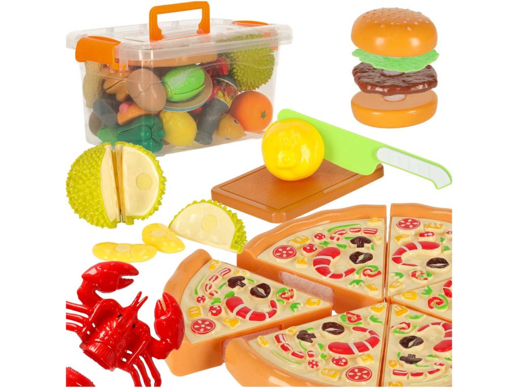 Potraviny (pizza, vejce, krab, humr, duran, lilek, kukuřice, salát, ořech, hamburger, kuře, ryba, toast, paprika, fazole, hod-dog, citron, kiwi, banán, mandarinka, olej, omáčka, sůl)