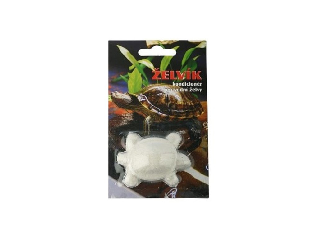 Želvík obsahuje látky, které vhodně upravují pH vody na neutrální reakci. Zabraňuje tak překyselení vody v želváriích a vápník, který je postupně při rozpouštění bloku uvolňován, omezuje měknutí želvých krunýřů.Návod na použití: blok umístěte do želvária, kde se začne postupně rozpouštět. Neutralizuje kyseliny želvou vypouštěné do vody a tím upravuje pH. Pro zajištění kvalitního životního prostředí a zvýšení účinnosti bloku doporučujeme denně vyměňovat vodu, zvláště u želv, které jsou krmeny přímo v želváriu.Složení: síran vápenatý, síran hořečnatý, chlorid sodný, vitamín B1.Doplňkové parametry