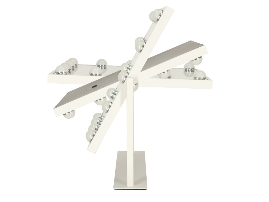 Díky12 jasným LED diodám můžete snadno nanést jakýkoli make-up, a to i v místnostech se špatným osvětlením. Dotyková tlačítka na zrcátku umožňují měnit barvu světla mezi teplou bílou, přirozenou bílou a studenou bílou a jeho intenzitu . Stabilní kovový stojan s protiskluzovým materiálem zajišťuje, že se zrcátko nepřevrátí, když při líčení změníte jeho úhel. Díkyminimalistickému designu a bílé barvě bude zrcadlostylovým doplňkem vašeho toaletního stolku nebo koupelny a dokonale zapadne do každého interiéru.