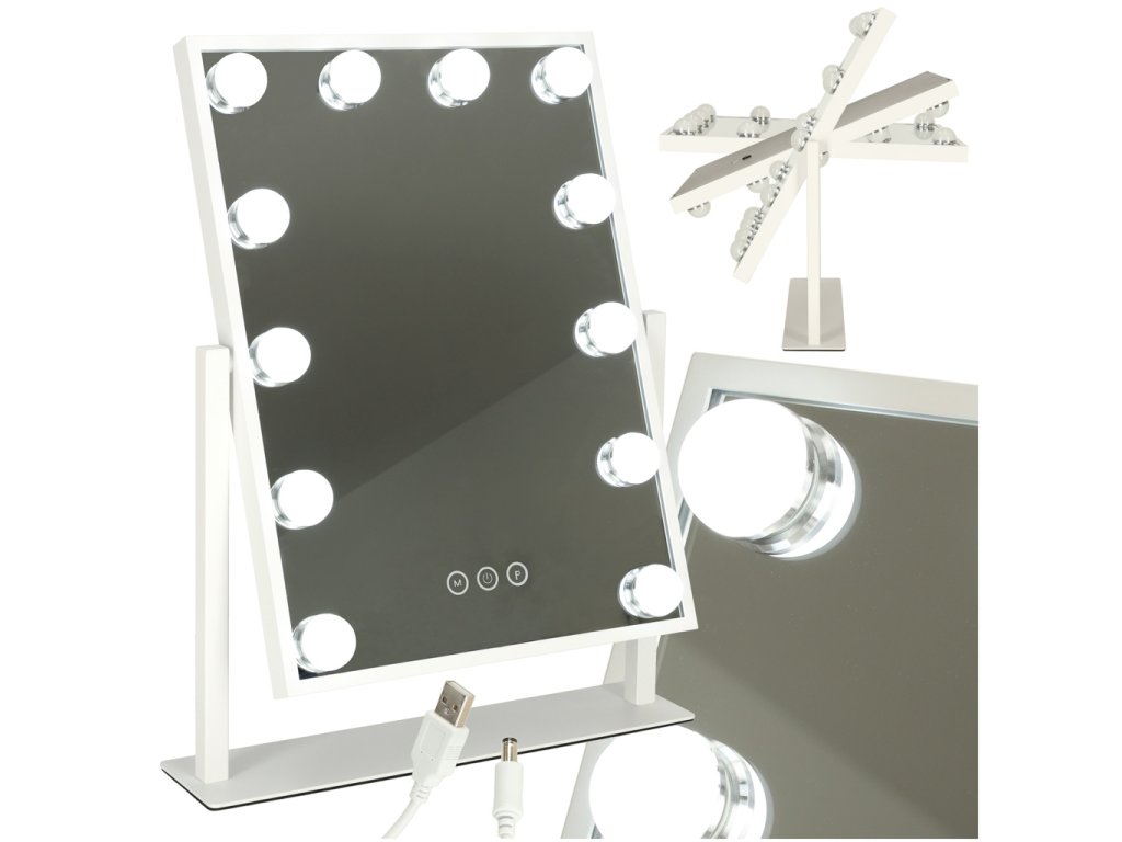 KOSMETICKÉ MAKE-UP ZRCADLO VEDLO STOJÍCÍ S 12 USB ŽÁROVKAMI 30X40CM